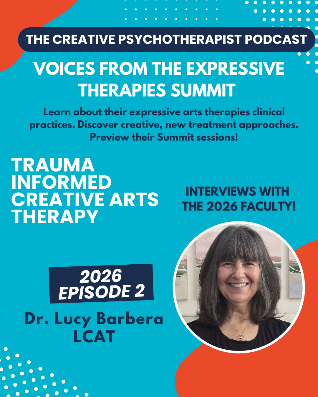 FEATURED GUESTS: Dr. Lucy Barbera, LCAT is a New York State Licensed Creative Arts Therapist, Art Teacher, and School District Administrator, whose work spans the medical, psychiatric, and educational settings. Dr. Barbera served on the faculty of The Humanistic Multicultural Education Graduate Program, at the State University of New York (SUNY), at New Paltz, for twenty-three years, where she developed and taught courses in Expressive Arts in Education, Human Services, and in Social Justice Leadership. Currently, Dr. Barbera is facilitating the Trauma-Informed Creative Arts Therapy Certificate Program for Mental Health Professionals & Educators, a post-graduate program, professional development training program, now in its fifteenth year, in collaboration with the Expressive Therapies Summit. Dr. Barbera lectures widely and maintains a private practice in Art and Sandplay Therapy in Kingston, New York, working with children and adults with life-threatening medical conditions, teens who self-harm, or are challenged with disordered eating, addiction, death, loss, and complex trauma. Dr. Barbera’s doctoral dissertation on the Expressive Arts and Social Justice was granted The Excellence in Scholarship Award in 2009, by the Electronic Thesis and Dissertation Association (ETD) and her book, Expressive Arts in Teacher Education: Cultivating Social Justice Leadership, was published in 2011. Her most recent publications include, Avatar: Masks of Hope and Healing, in Susan Ridley’s The Expressive Use of Masks Across Cultures and Healing Arts, was published by Routledge in 2024 and Joining Social Justice Teacher Education and the Expressive Arts, has just been republished in Natalie Rogers’ The Creative Connection for Groups: Person-Centered Expressive Arts for Healing and Social Change. For Information about Dr. Barbera’s program offerings may be found on her website at: https://www.arttherapycertificate.com/ and https://www.expressivetherapiessummit.com/ti-cat LISTEN & LEARN: The benefits of intermodal processes in the treatment of trauma. What students in the certificate program can expect to learn. The relationship between trauma and imagery. How embracing a hybrid approach to training has allowed Dr. Barbera to reach students around the world and build a connected community. RESOURCES MENTIONED ON THE SHOW: Web: www.arttherapycertificate.com/ Facebook: www.facebook.com/arttherapycertificateprograms/ Facebook Group: www.facebook.com/groups/makingspecial LinkedIn: www.linkedin.com/in/lucy-barbera-phd-lcat-83578b8/ Trauma-Informed Creative Arts Therapy Certificate Program SESSIONS AT THE SUMMIT: Starting April 11 through June 13th Lucy Barbera will be leading the Trauma-Informed Creative Arts Therapy Certificate Program at Creative Arts Therapy Studio in Kingston, NY & Virtually-Live-Online sign up here at www.expressivetherapiessummit.com/ti-cat You can attend in-person at the Creative Art Therapy Studio in Kingston, NY or attend virtually over Zoom. CLICK HERE TO LISTEN TO THE PODCAST EPISODE CLICK HERE TO WATCH THE EPISODE ON YOUTUBE!